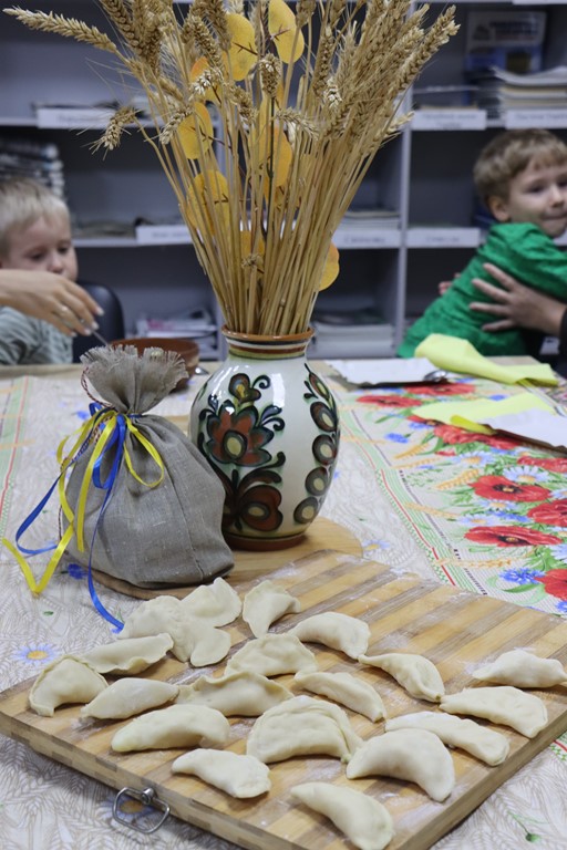 Наприкінці діти власноруч декорували склянки природними матеріалами, про які дізналися в бібліотеці А ще – взяли участь в майстер-класі з ліплення вареників і залюбки ними пригостилися!